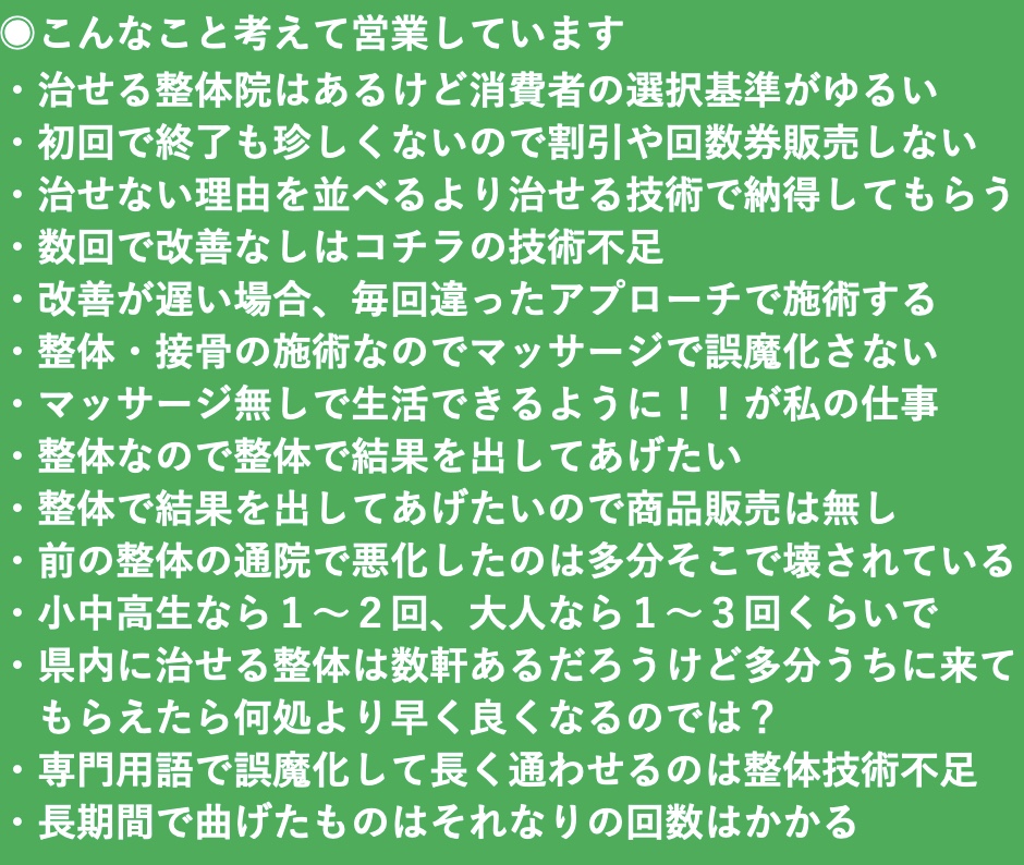※今やきれいなホームページやムダに書かされた口コミなどで、どの治療院もゴットハンドに見せられる時代。治らなくていい方は別として、本当によくなりたいかたは、ここから下も読んでください。