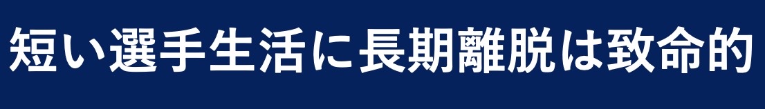 初期に改善できなかった場合、疲労骨折や筋肉や靭帯の断裂などを起こしてしまったりします。軽い場合でも2週間、長ければ数ヶ月の経過観察などと診断されます。実はこういった経過観察の後復帰して、また痛くなりの繰り返しで1年以上を棒に振ったり競技生命を絶たれたりした選手はたくさんいるのです。